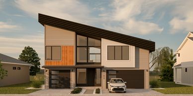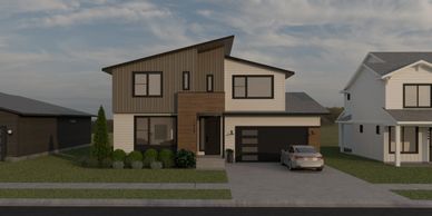 Apex is a 2,000 sq. ft. home with 4 bedrooms, 2.5 bathrooms, and a 2-car garage. All bedrooms and laundry are located on the second floor. Features include 9-foot ceilings, a modern fireplace, a walk-in pantry, and black exterior windows. The basement is pre-framed with plumbing and includes an egress window, ready for future finishing.