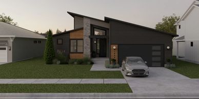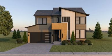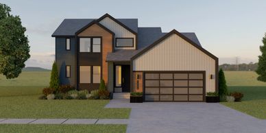 Lumen is a 2,200 sq. ft. home with 4 bedrooms, 2.5 bathrooms, and a 2-car garage. It features a first-floor primary suite, a study, and a rear-facing living room adjacent to the dining area and kitchen. Additional highlights include black exterior windows, a modern fireplace, a walk-in pantry, and second-story laundry. The basement is pre-framed with plumbing and includes an egress window, ready for future finishing.